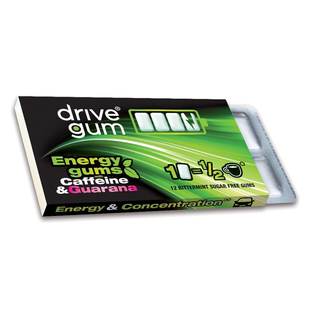 Chewing gum con caggeina e guaranà, in grado di aumentare l'attenzione e la concentrazione. Ogni gomma equivale a mezzo caffè, studiato per chi studia, chi guida, chi lavora e chi fa sport. Senza zucchero, senza glutine, vegane e non macchiano i denti.