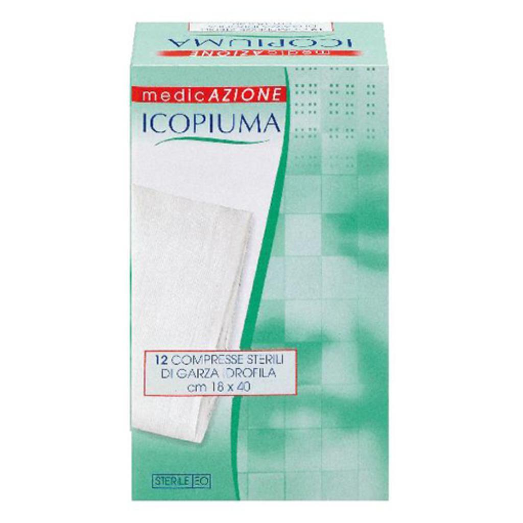 Formato Confezione da 12 compresse sterili di garza idrofila. Dimensioni: 18x40 cm